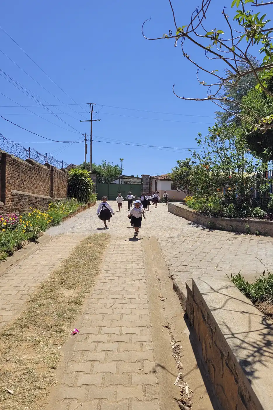 « Cette colonie », comme on dit là-bas, est éloignée de tout. Aussi, peu à peu une école et un jardin d’enfants « Kinder » ont vu le jour. C’est pour ce dernier que nous avons besoin de votre aide. Les sœurs désirent construire un grand préau qui permettra aux enfants de ne souffrir ni de la pluie violente à certains moments ni du soleil dardant à d’autres moments.